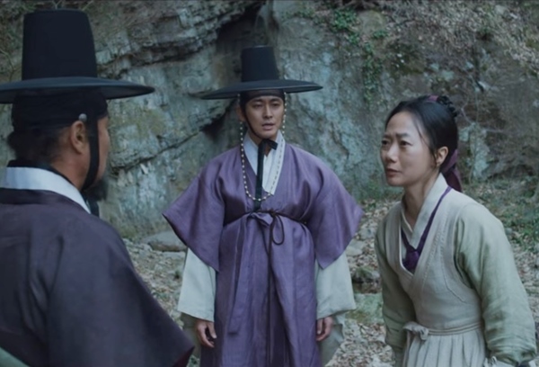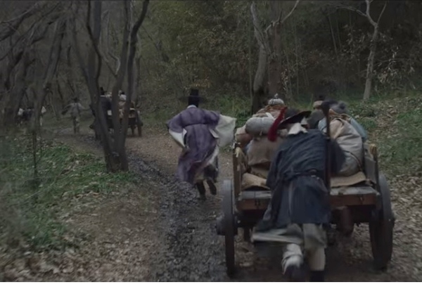 상주로 가는 길에 도망간 동래부사는 조운선에서 탈출하여 세자일행과 만나게 되어 함께 움직입니다. 깊은 산속에 화전민 마을이 있어 가보니 고기에 쌀밥을 먹고 잔치를 벌리고 있었습니다. 그래서 어디서 난 것이냐고 묻자 배 한척을 약탈했다고 하며 죽은 사람들은 모두 묻어줬다고 하지요. 세자와 일행들은 놀라 시체가 묻힌 곳으로 안내하라면서 그들을 따라갑니다.