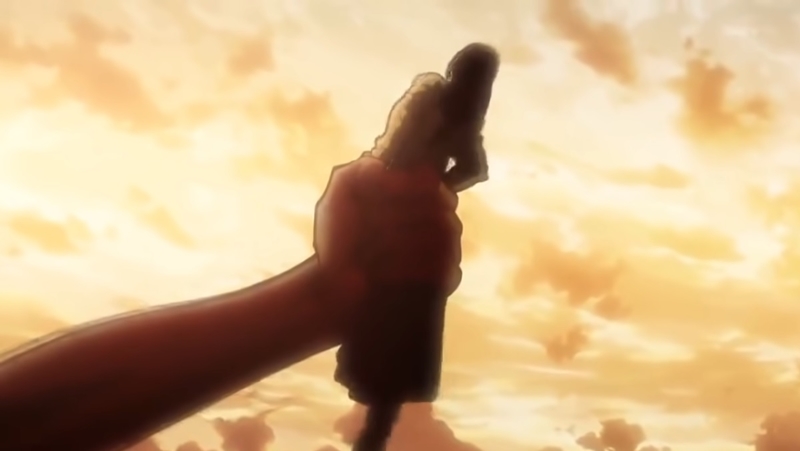 구멍으로 거인들이 들어와 마을 사람들을 잡아먹게 되고, 엘렌과 미카사는 엄마가 있는 집으로 향합니다. 그곳엔 커다란 바위에 뭉개진 집 잔해더미에 엄마가 깔려있고, 거인이 엄마를 먹는 장면을 보게 됩니다. 주둔병사 한네스씨는 엘렌과 미카사를 데리고 그곳을 빠져나오고 월 로제로 피난을 가죠. 그때 시간시나 구의 내문이 갑옷 거인에 의해 구멍이 뚫립니다. 충격에 싸인 엘렌은 잠에서 깨어보니 자신의 목에 아버지의 지하실 열쇠가 걸려 있습니다. 이 부분은 나중에 시즌 3에서 밝혀지게 됩니다.