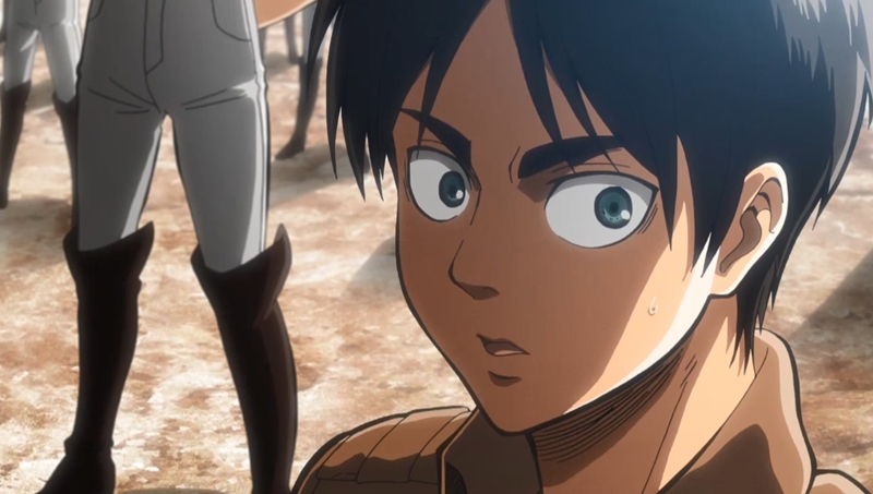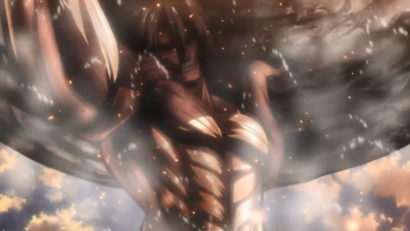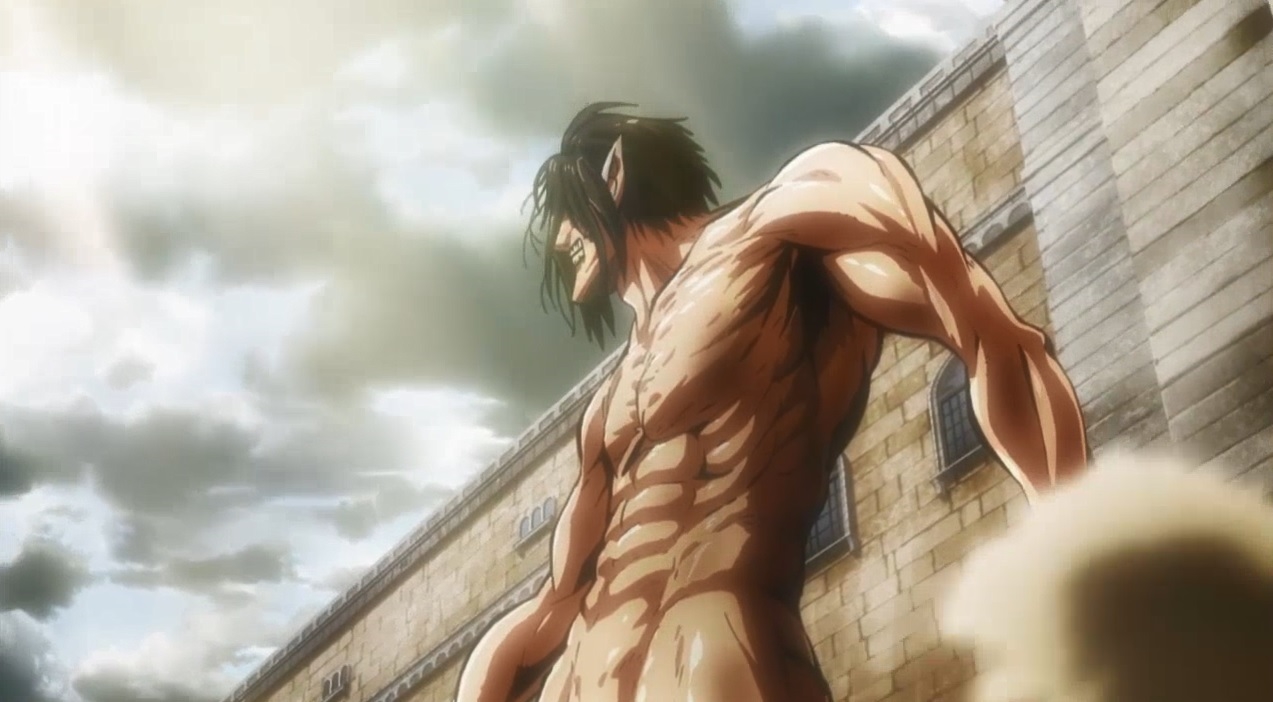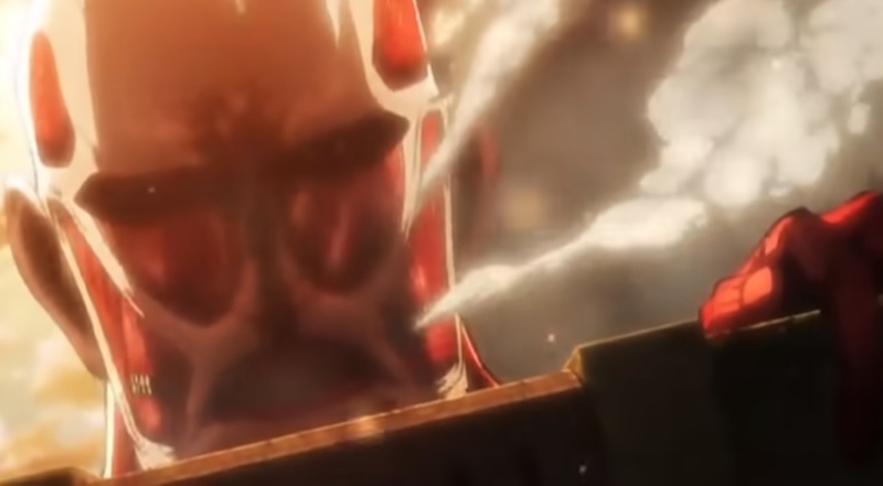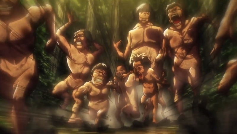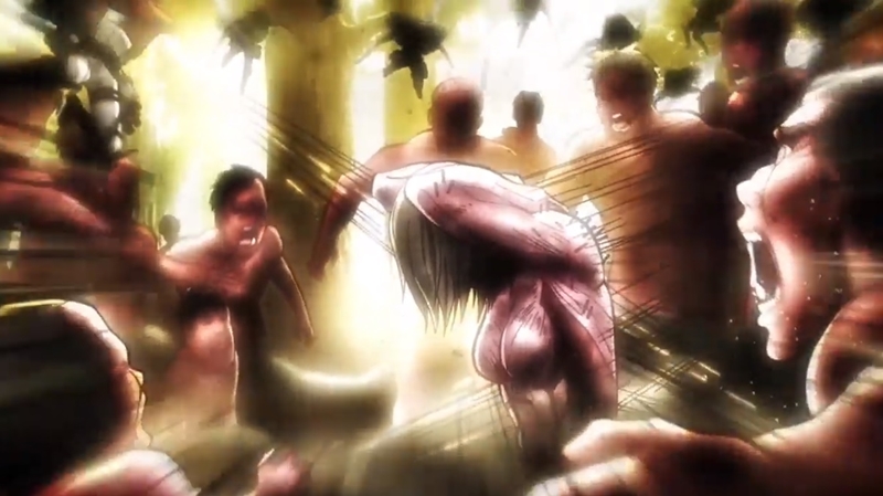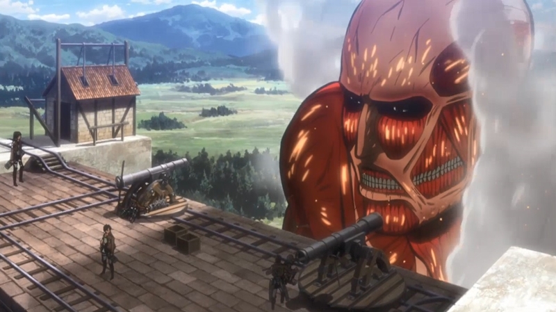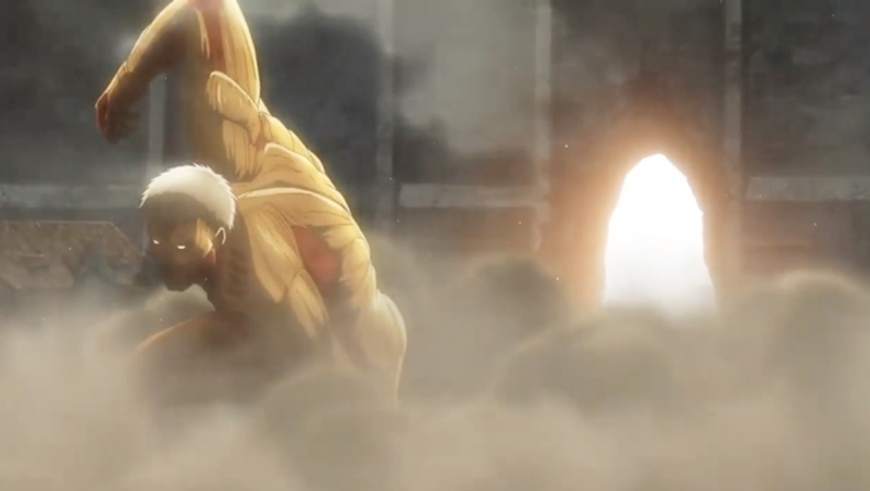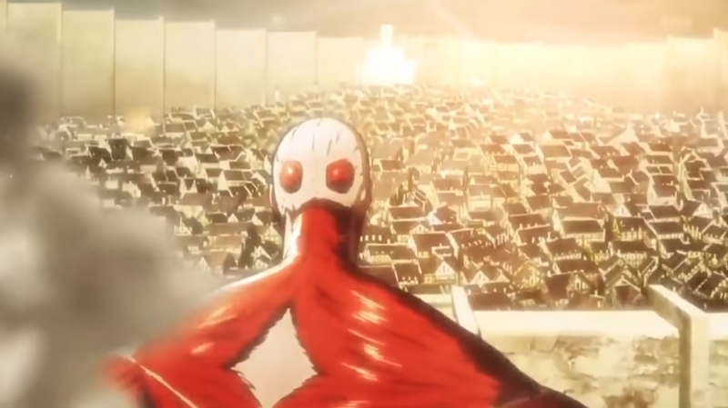 아르민과 엘렌은 바깥세상에 나가고 싶어 하며 벽 안에서 앞으로도 안전할 것이라고 믿는 사람들이 이상하다고 생각합니다. 그러던 중 갑자기 번쩍이며 번개 치듯 굉장한 소리가 들립니다. 놀란 사람들은 벽으로 달려가는데 50m의 높이보다 더 큰 초대형 거인이 벽 안 사람들을 바라보며 벽에 구멍을 뚫어버립니다.