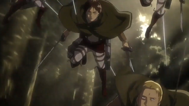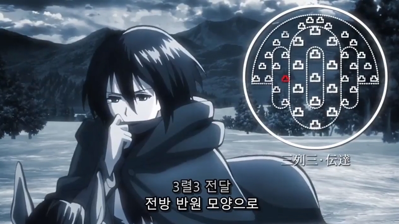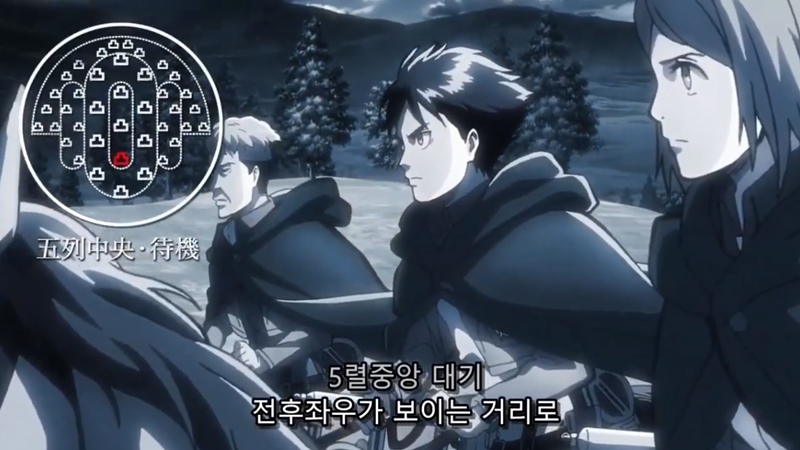 조사병단의 단장 엘빈단장과 리바이 단장의 힘으로 조사병단에 들어올 수 있게 되었고, 한지 조에 분대장과 거인으로 변하는 과정을 훈련하고 연구하게 됩니다. 이번 트로스트 구에서 거인과 싸우면서 3m, 4m의 두 거인을 잡았는데 누군가에 의해 두 거인이 죽게 됩니다. 조사병단의 엘빈단장은 이번 일로 병사들에게 얘길 하지 않고 벽 밖으로 조사 작전을 수행합니다.
