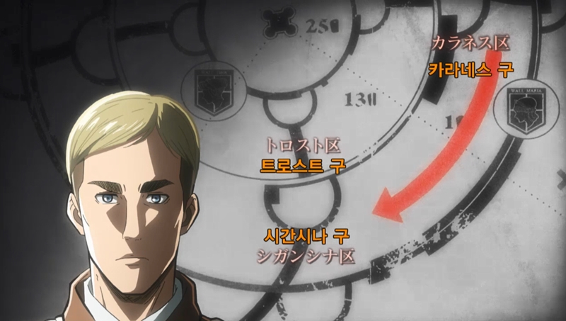 아르민은 이번 작전 수행에서 여성형 거인에 대해 분석하다가 여성형 거인으로 변한 인간이 누구인지 짐작하게 됩니다. 그리고 엘빈단장에게 알려주죠. 벽 밖 조사 작전에 소득이 없어 앨빈단장이 왕도로 소집됨과 동시에 엘렌도 함께 인도하게 되었습니다. 그런 과정에 엘렌을 빼내기 위해 헌병단에 있는 애니에게 부탁을 하죠. 월 시나의 문을 빠져나가기 위해 헌병단의 도움이 필요해서입니다.