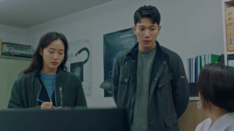 정태을은 죽은 사체의 부인과 연락이 되어 강력반 형사 강신재와 함께 증인을 만나러 왔습니다. 부인의 말로는 빚이 많았고 핸드폰을 두 개씩 들고 다녔다고 합니다. 그 중 하나는 2G 폰. 그리고 과학수사팀 희주에게서 이상도의 머리 상처와 김복만의 머리 상처가 같다고 합니다. 신재와 태을이는 흉기를 찾기로 하죠.