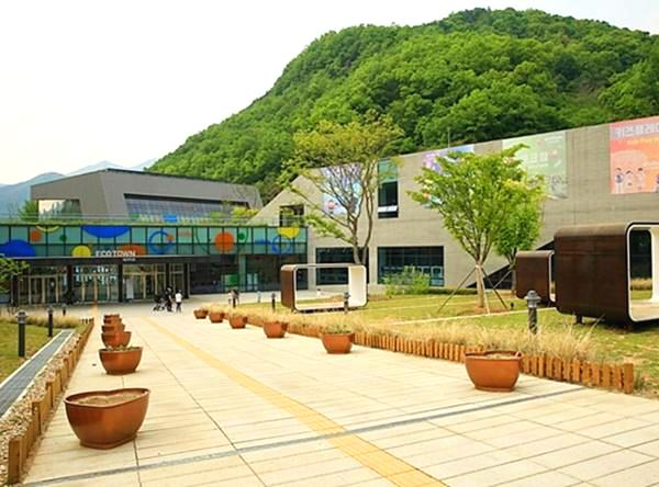 자이언트 포레스트에서 오른쪽으로 가면 큰 건물이 있는데 이곳이 에코타운입니다. 에코타운에는 영상제작, 기획, 촬영, 편집의 모든 과정을 체험할 수 있는 에코스튜디오, 환경을 생각한 체험형 전시공간의 에코써클, 아이들을 위한 콘텐츠와 카페를 이용할 수 있는 에코플라자가 있었습니다.