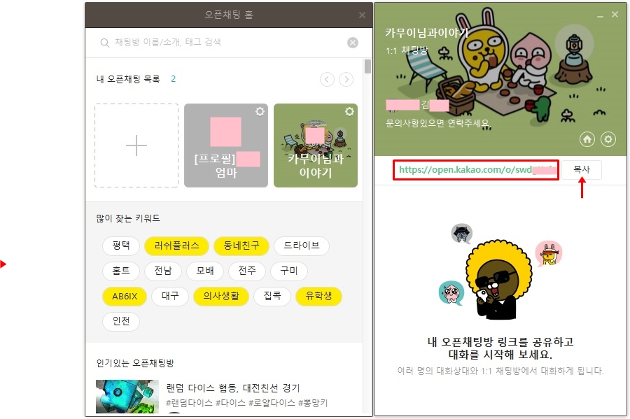 카카오 오픈톡(오픈채팅) 만드는 방법과 바로가기