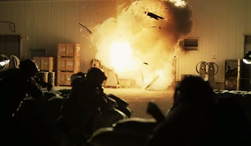작전 20분 경과 후 교수와 대화하기 위해 아날로그 통신 시스템을 연결했습니다. 휴대폰도 없고 무선주파수도 안 잡히는 곳이어야만 교수와 8인의 공범이 나누는 대화를 경찰이 듣지 못하기 때문입니다. 모든 준비가 끝나자 경보기를 수동으로 울리고 경찰이 도착하기를 기다리죠. 작전대로 경찰이 도착하자 밖으로 나가서 돈을 내려놓고 경고 없이 사격한 다음 들어오기로 합니다.