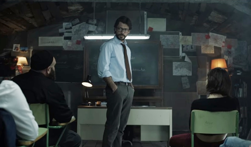 교수는 8인의 강도들에게 교육한 것이 있습니다. 바로 시간이 돈이었습니다. 우리들은 훔치는 것이 아니라 경찰의 시간을 뺐는 것이라고 교육을 시킨 것이죠. 경찰과 대치하고 시간을 지체하는 동안 그들은 더 많은 지폐를 찍을 수 있었던 것입니다. 어디에도 유통된 적이 없는 화폐였던 것이죠. 그래서 추적도 불가합니다.