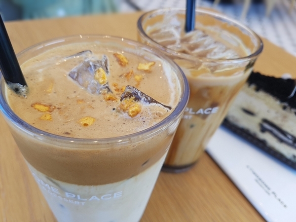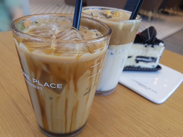 투썸플레이스에 들어서자마다 넓은 홀을 보고 구경하다 커피를 주문했습니다. 아이스아메리카노를 외치던 제가 이 날은 달콤한 것이 마시고 싶어 아이스 달고나라떼와 흑당라떼를 주문해보았습니다. 더 달콤한 조각케잌까지 추가주문하였습니다.