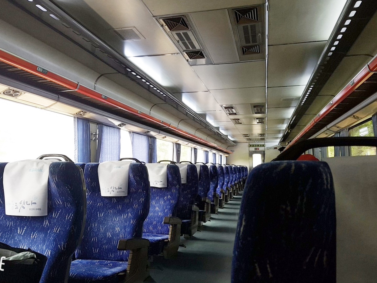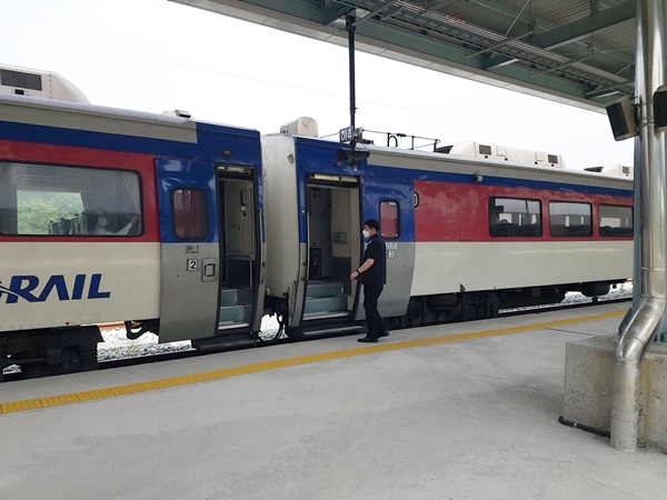 무궁화호 좋은 좌석 예매 시 혼자이거나 홀수 인원일 경우 창 측 예매가 가능하고 내측은 예매를 할 수 없습니다. 코로나로 거리두기를 기차 내에서도 실행이 되고 있었지요. 그래서 내측 좌석은 모두 비어 있었습니다.