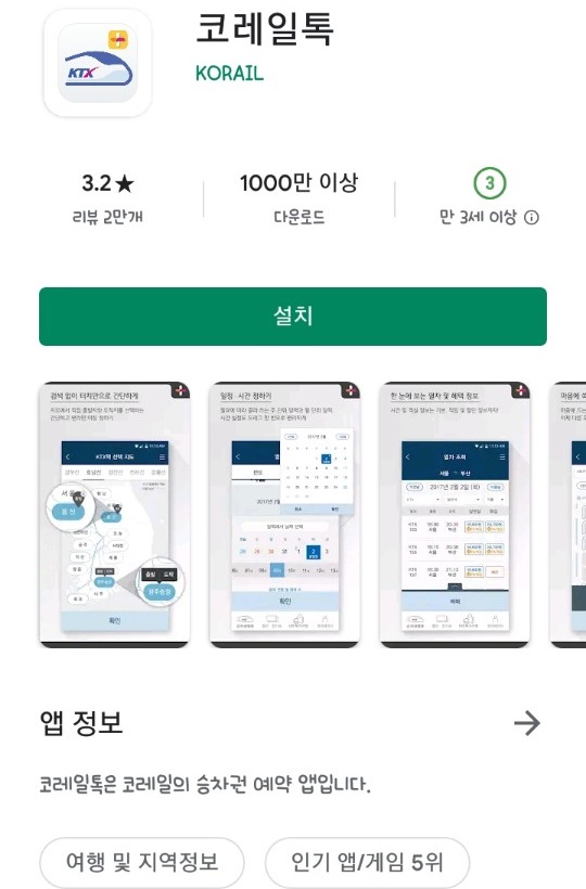 코레일톡 앱 설치하기