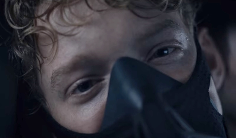 누군가 벙커 문을 두드리는 소리가 들리자 시모네와 라스무스는 엄마 말을 듣지 않고 아빠가 왔다며 문을 열어버립니다. 비를 맞은 남자는 발작을 일으키며 라스무스를 잡아끌자 엄마는 한 발 늦게 도착하여 그 남자를 자신의 몸으로 밀치고 밖으로 떨어집니다. 비를 맞은 엄마도 곧 발작을 일으켜 죽고 말죠. 시모네와 라스무스는 그렇게 엄마마저 보내버립니다.