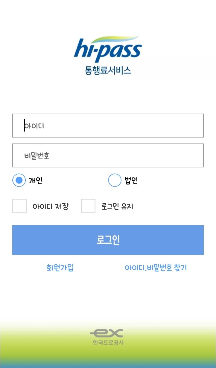 play스토어나 원스토어에서 '통행료서비스+' 앱을 설치한 후 이용하는 방법이 있습니다. 한국도로공사홈페이지에 회원가입이 되어 있다면 같은 계정으로 로그인하시면 되고 없으시다면 회원가입을 하시면 됩니다.
