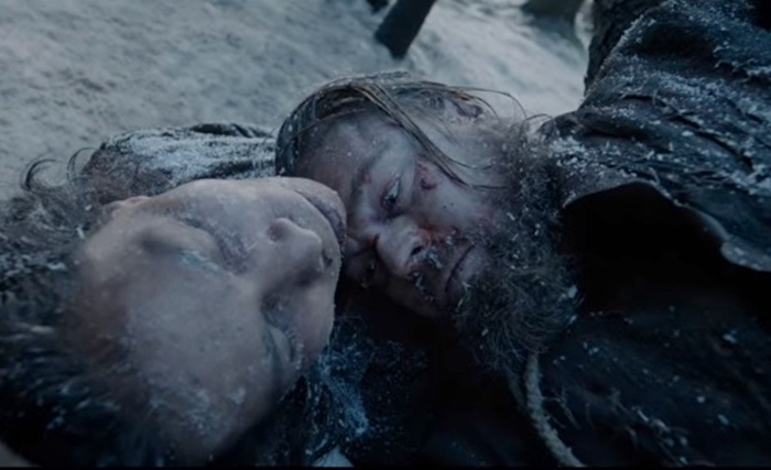 죽은 아들 곁으로 몸을 끌고 온 글래스는 아들에게 끝까지 지켜주겠다며 함께 누워있는데 그는 이대로 죽을 수는 없었습니다. 극한의 추위속에서 그는 살아남아 복수를 해야만 했죠. 걷지 못하는 몸을 기어서 겨우 강가에 도착해 물을 마시는데 구멍난 목에서 핏물이 흐르자 화약을 발라 불로 지져 상처를 꿰매고 마른 풀을 뜯어 먹거나 작은 새를 잡아 끼니를 떼웁니다.