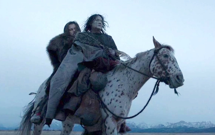 하지만 피츠 제럴드는 글래스를 도울 생각이 없죠. 짐과 호크가 없는 사이에 글래스를 죽이려고 하는데 그 장면을 호크가 보고 거세게 항의하자 제럴드는 호크를 죽입니다. 눈 앞에서 아들의 죽음을 본 글래스도 몸부림을 쳐보지만 소용이 없습니다. 제럴드는 호크의 죽음이 들킬까 싶어 아리카라족이 근처에 왔다며 짐을 속이며 도망가려고 합니다.