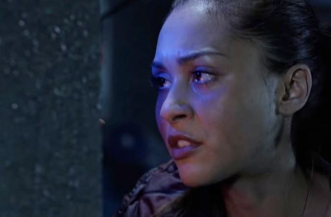 배를 타고 온 에모리가 자하의 가방을 훔치고 그 가방을 들여다보는데... 그것은 바로 앨리였습니다. 자하가 인공지능 앨리를 데리고 다니는 것이죠. 머피와 에모리는 배를 타고 자하를 버리고 달아나버립니다. 칩을 삼킨 사람들은 어떠한 고통도 느끼지 못하고 기억들이 모두 앨리가 가져가 버립니다.
