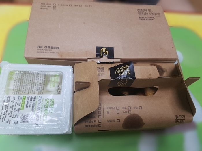 교촌치킨은 허니콤보의 상자가 더 크고 레드콤보 상자 사이즈는 작았습니다. 허니콤보의 양이 더 많다고 생각할 지 모르지만 제 생각엔 허니콤보의 튀김옷이 두껍고 뭉개지지 않게 하기 위해 상자의 넓이를 좀 더 넓게 하지 않았나 싶었습니다.