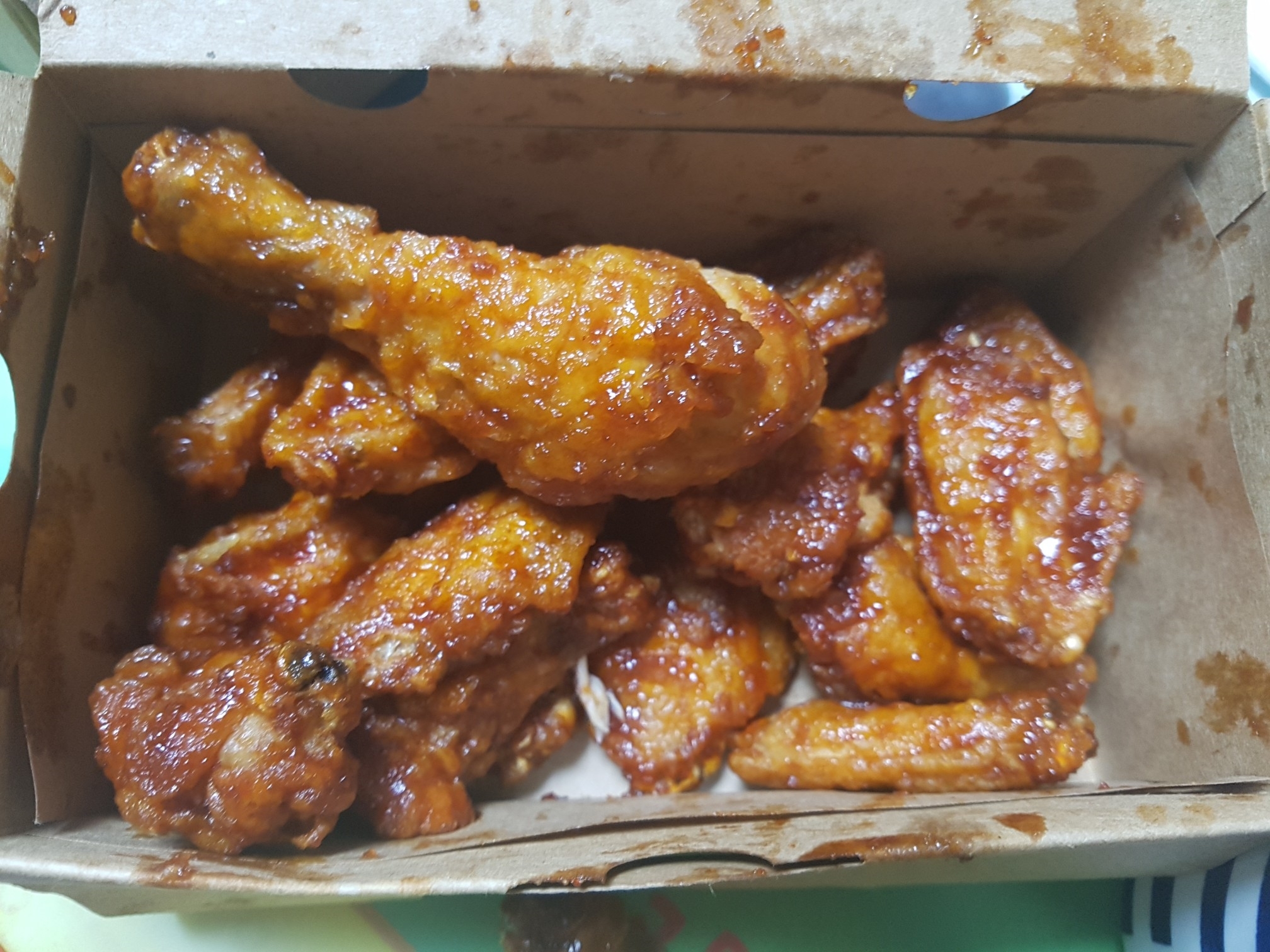 교촌치킨의 교촌레드콤보의 첫 번째 매력은 매콤하면서 짭조름한 것이 매콤한 닭날개조림을 먹는 것 같았습니다. 매운 정도는 생각보다 많이 맵지 않았는데 매운 것 잘 먹는 초등생 아이의 표현으로는 혓바닥에 불이나고 입술이 뜨거웠다고 하네요. 어른이 먹기에는 적당한 매운 맛이었습니다.