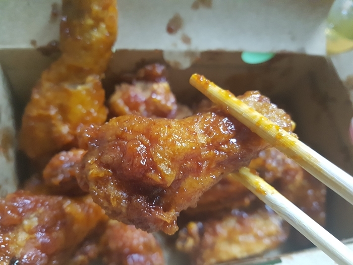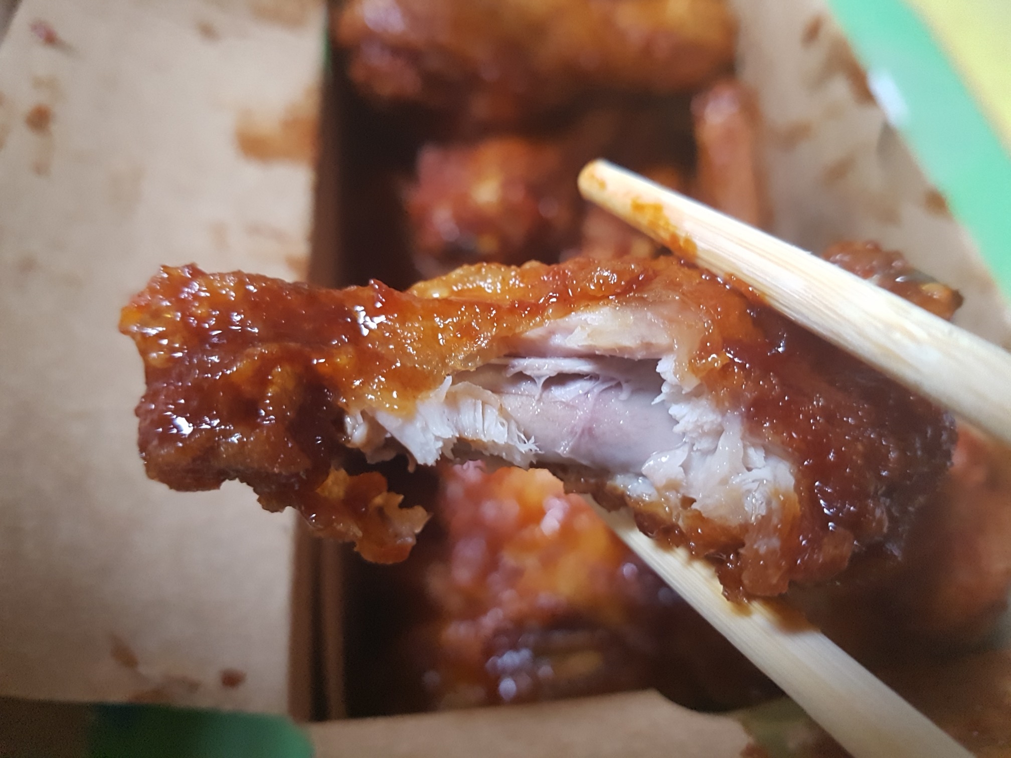 그리도 두번째 매력은 달콤하지만 질리지 않을만큼 달았고 단짠단짠 맛이 났습니다. 교촌치킨의 특성상 단짠단짠의 대명사가 아닐까 싶은데요. 그 맛을 보유하면서 단 맛이 잘 어우러졌습니다. 매운 거 싫어하시면 허니콤보 추천드려요.