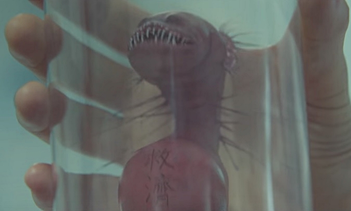 안은영선생은 학교에 돌아다니는 모든 옴을 모아 혜민이에게 먹게 한 후 수술하러 가자고 하죠. 위 수술을 맡은 의사는 유리병에 혜민의 위가 있는 자리에 위 대신에 '구제'라 적힌 괴물이 들어있었다며 보여줍니다.