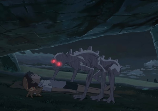 아스나는 어두운 밤 잠자기 전 자신의 비밀장소에서 푸른빛이 반짝이는 것을 보는데 다음 날 학교를 마치고 가보기로 합니다. 철길을 걷다가 이상하리만치 조용한 분위기에 긴장을 하는데 철교 중앙에 웬 이상한 괴물을 만나게 되죠. 그 괴물이 아스나를 공격하는 찰나에 웬 소년이 나타나 푸른빛 광석으로 괴물을 물리칩니다.