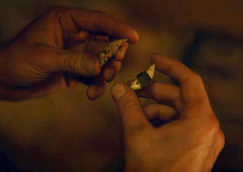 아르미니우스는 군기가 사라진 곳에서 늑대 이빨 목걸이를 줍게 됩니다. 바로 그 목걸이는 자신이 가지고 있는 이빨과 같은 모양입니다. 어릴 적 투스넬라, 폴크빈과 늑대사냥을 한 후 서로 이빨을 나눠갖었죠. 그는 이 목걸이가 친구들 중 한 명일거라는 추측을 하게 됩니다.