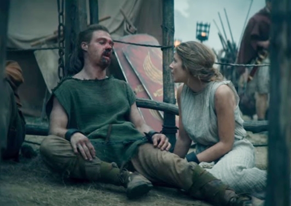 투스넬라는 로마군에 머리를 숙이는 자신의 아버지에게 화가 나 아버지를 밀쳐버립니다. 그리고 로마군에게 잡힌 투스넬다를 본 동생 안스가는 누나를 구하려 달려들다 심하게 맞아 불구가 되어버리죠. 그 모습에 족장은 어쩔 수 없이 로마군에게 충성을 맹세합니다.