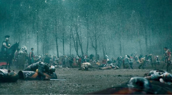 죽음의 숲에서 마주한 아리와 폴크빈과 부족민들. 결국 폴크빈은 아리(아르미니우스)에게 잡히고 아리는 폴크빈의 머리를 잘라 가지고 가야만 합니다. 아리는 검으로 폴크빈을 내리칠까요? 하지만 아리는 폴크빈을 내리치는 대신 자신과 함께 온 로마군을 모두 죽입니다.