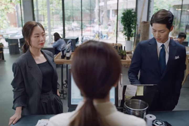 까페 들린 빈센조는 에스프레소 더블샷을 주문하자 홍차영이 다가와 '아이스 아메리카노 두 잔 시키죠?'라고 하자 이탈리아에선 아메리카노는 구정물이라고 직구를 날립니다. 홍차영은 거기다 '전 아이스 구정물 하나요.' 라네요. 두 사람의 이런 대화 너무 재미있네요.