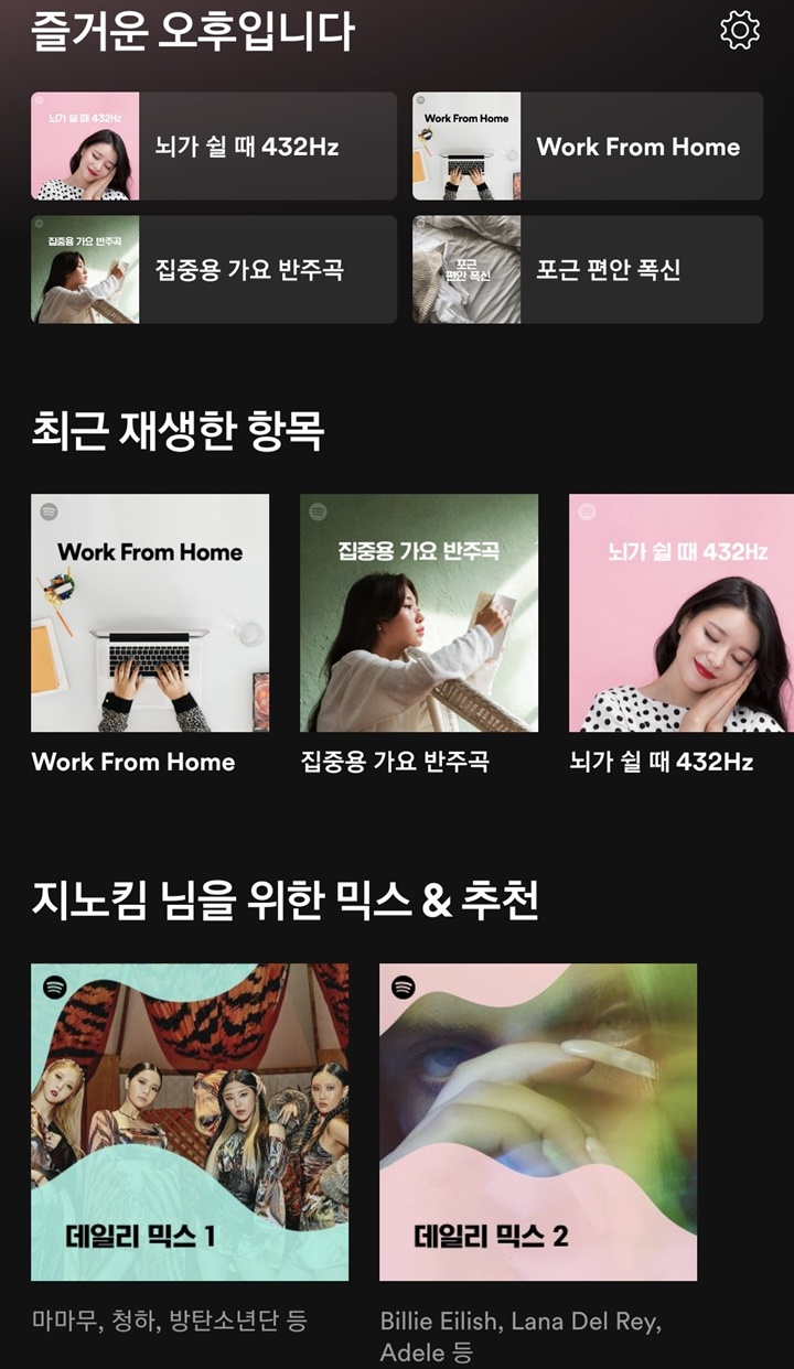 스포티파이를 스마트폰에 앱에 다운로드 설치하여 가입했고 사용방법에 대해서도 알아보았습니다. 스포티파이를 사용하고부터는 하루를 좀 더 즐겁게 보낼 수 있게 되었습니다. 아침에 일어나 듣는 노래, 일할 때 듣는 노래, 음식 할 때 듣는 노래 등 나에게 맞춘 음악들이 무료한 시간들을 기분 좋게 보낼 수 있어서 좋았습니다.