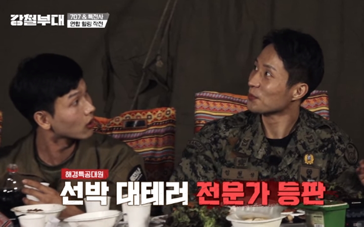 대항군 키워드 중 선박 탈환이 가장 유력하다고 예상하던 특전사들은 선박 탈환 작전에 김필성 대원에게 자문을 구합니다. 김필성 대원은 선박에서 가장 먼저 해야 하는 것이 조타실을 점령하는 것이라 팁을 알려줍니다.