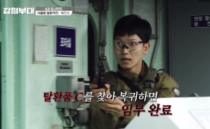 김범석과 정종현이 1조로 김상욱과 육준서가 2조로 나뉘었습니다. 너무 자신 있던 작전이라 무조건 이겨야 했고 그에 따른 부담감을 가졌다고 합니다. 속도전으로 나가느냐 안전으로 나가느냐 딜레마에 빠진 UDT. 속도전으로 선두로 달리던 정종현은 숨어있던 대항군에 총상을 입었고 바로 김범석이 대항군을 제거합니다.