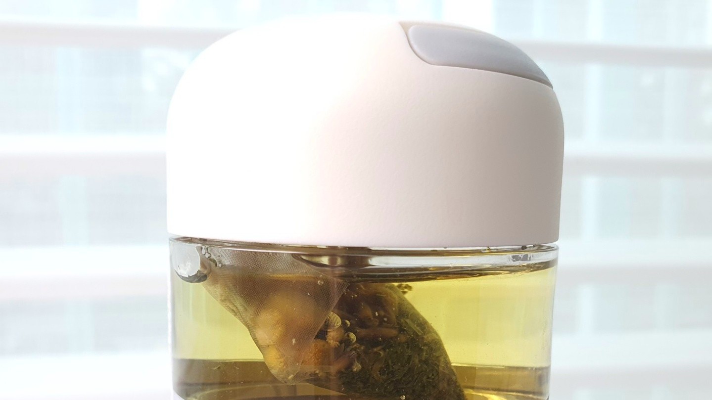 다른 방법으로는 차망에 잎차를 넣고 바로 뜨거운 물을 부어준 후 뚜껑을 닫으면 차가 진하게 우러납니다. 그리고 기울이면 찻물이 보틀에 흘러 담기죠. 하지만 다시 뚜껑을 열어 물을 부어줘야 원하는 양의 차를 우려낼 수 있어서 이건 여유로울 때 하는 방법입니다.