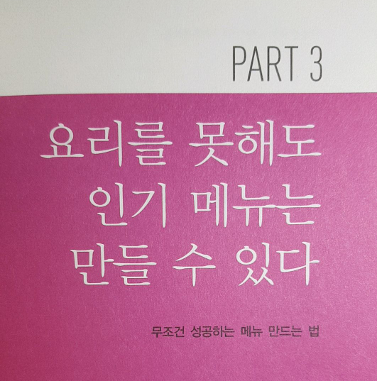 백종원 골목식당을 보면 다양한 음식을 만드는 요리사가 장사하는 것은 아니었다. 평범한 메뉴를 좀 더 전문적으로 손님들이 더 맛있게 먹을 수 있게 하는 것이 음식 장사다. 내가 만든 음식메뉴가 허기진 사람들의 배를 채우고 즐거움을 선사한다면 손님들은 또 찾아올 것이다. 메뉴 정보를 얻을 수 있는 곳은 널려 있다. TV 광고, 홈쇼핑 주방기구나 요리 광고, 요즘 먹거리 프로그램이 다양해서 아이디어를 얻을 수 있는 곳은 많다. 장사를 오랫동안 하기 위해서는 ' 강한 얼굴 메뉴 '를 만들어라고 한다.